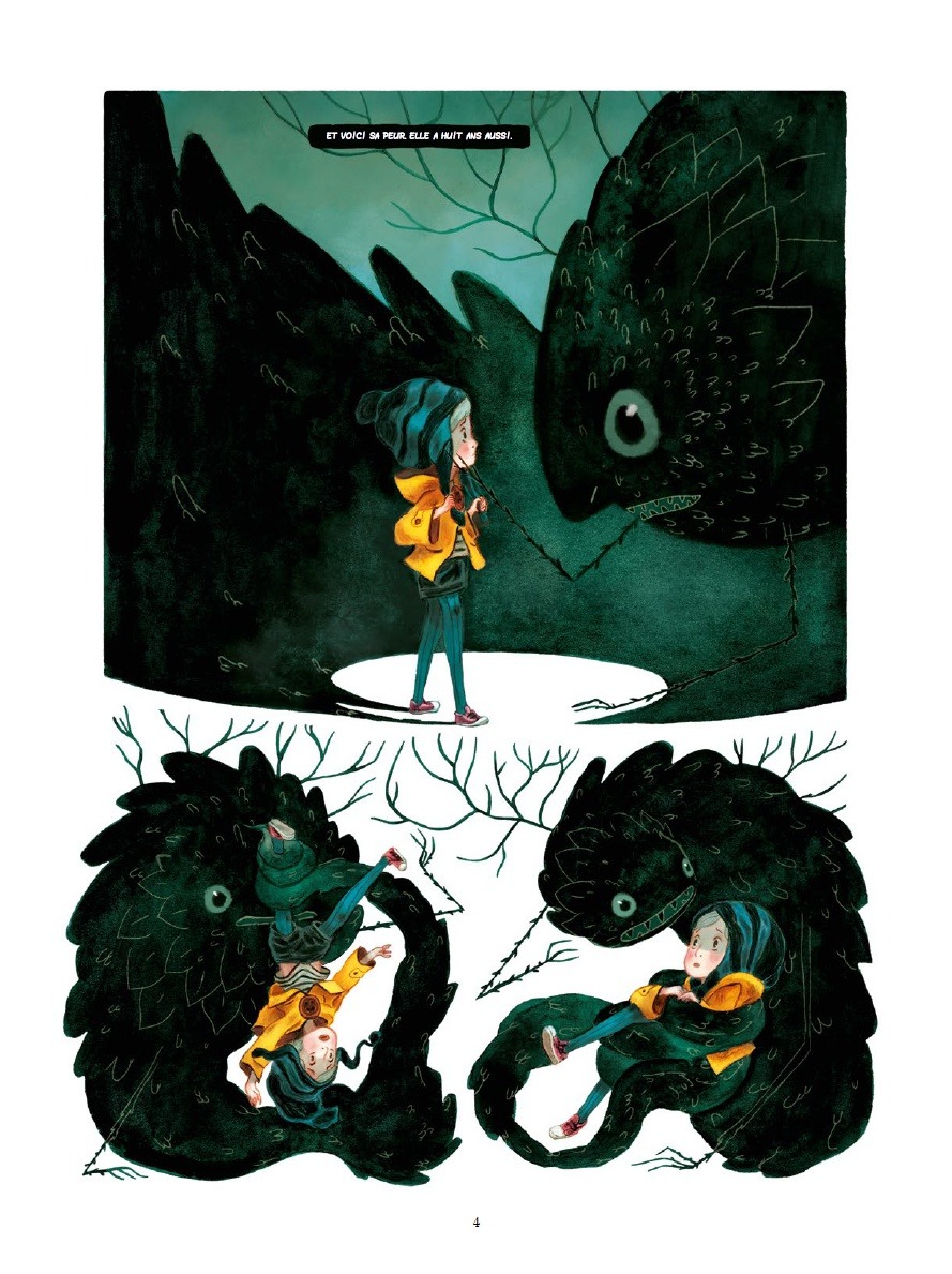 Cette peur – une énorme masse noire qui prend différentes formes – la suit partout, attachée à ses pieds comme son ombre.