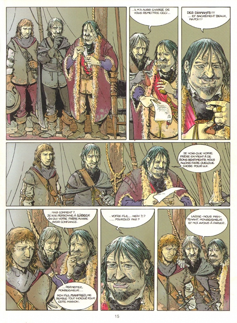 Obéissant aux ordres de son père et du puissant seigneur Wallenstein, il reçoit pour mission de rejoindre Lübeck en terre protestante pour en ramener son oncle Hermann, sa très belle femme Sanguine et surtout la fortune et les diamants qui permettront à Wallenstein de financer ses campagnes.