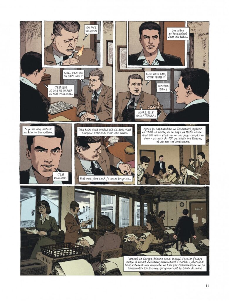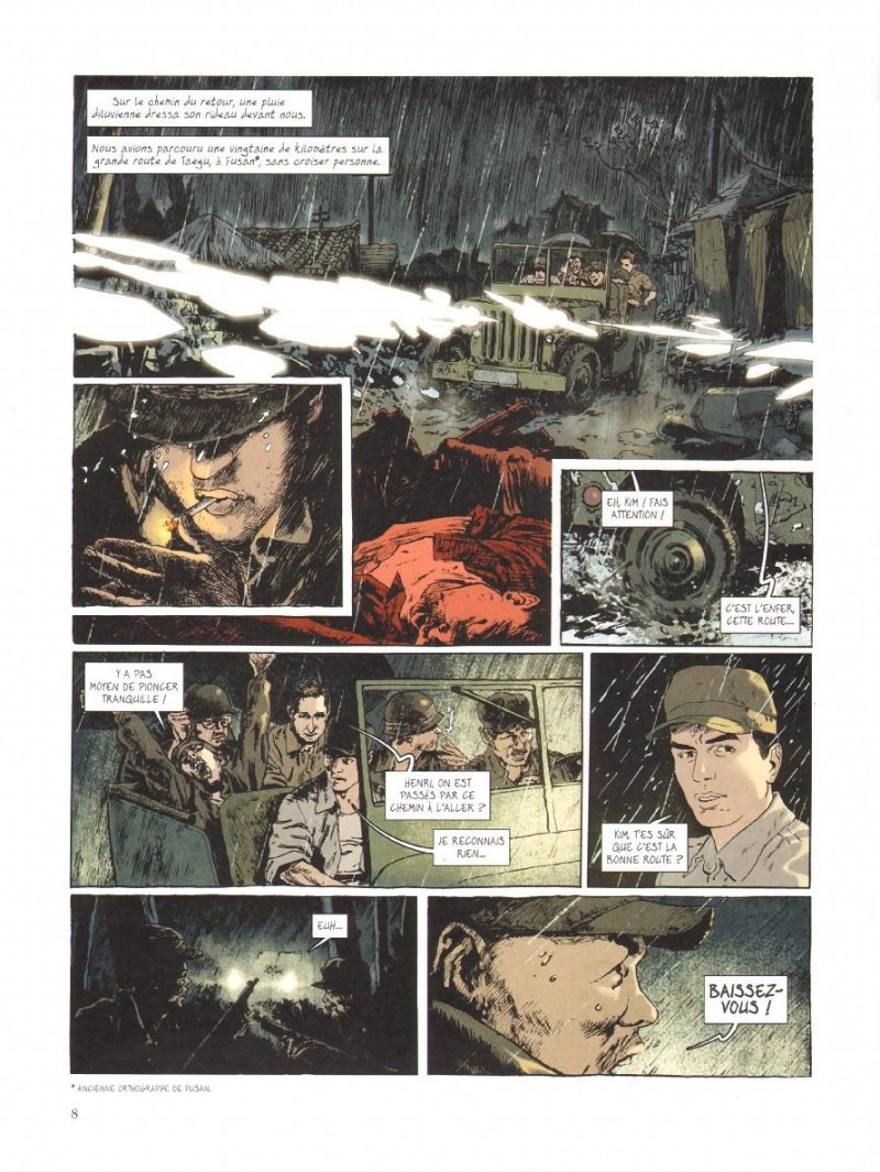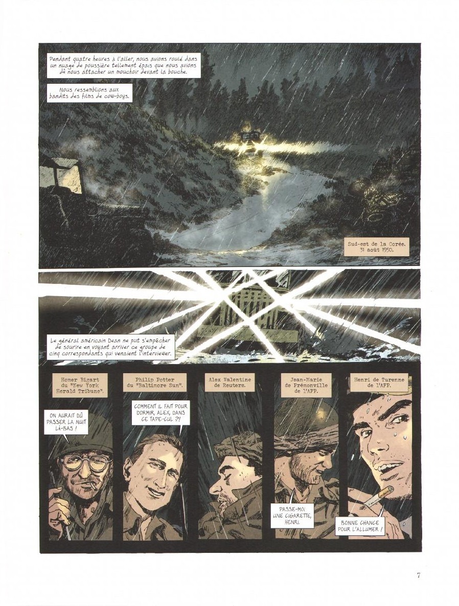 Les premières semaines, il va assister à la déroute américaine et sud-coréenne face aux Nord-Coréens soutenus par les Russes jusqu’au réduit de Pusan où, acculés, les Américains tenteront de lancer leur contre-offensive. Puis, ce sera le débarquement, grandiose et effrayant, des G.I. dans la baie d’Inchon près de Séoul qui changera la donne de cette guerre avant la course folle pour prendre Pyongyang au Nord et qui mènera jusqu’aux confins du pays en Mandchourie, à la frontière avec la Chine.